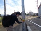 本校からバス停のある県道に出るT字路に、押しボタン式信号機が設置されました。さっそく、校内実習に取り組んでいる生徒が、横断歩道を渡りました。これからも事故に遭うことなく安全に通学ができるように、指導していきます。